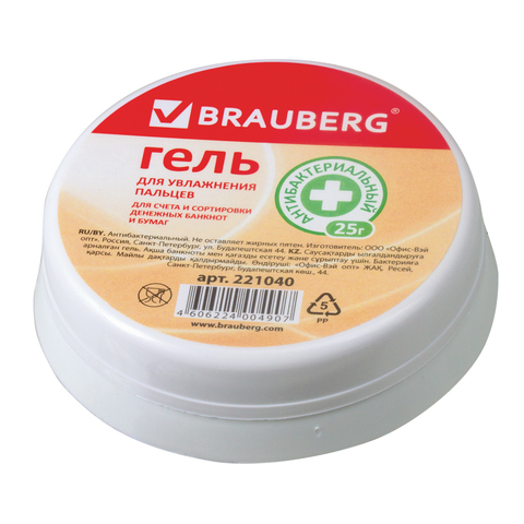 Гель для увлажнения пальцев Brauberg облегчает работу при подсчете денег, перелистывании документов, бюллетеней, подписных листов и т.п.