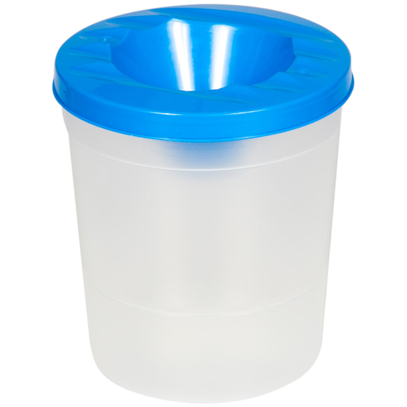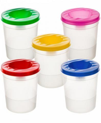 Пластиковая банка-непроливайка для рисования. Специальная форма крышки в виде воронки не даст воде вылиться из банки, даже при ее опрокидывании.
