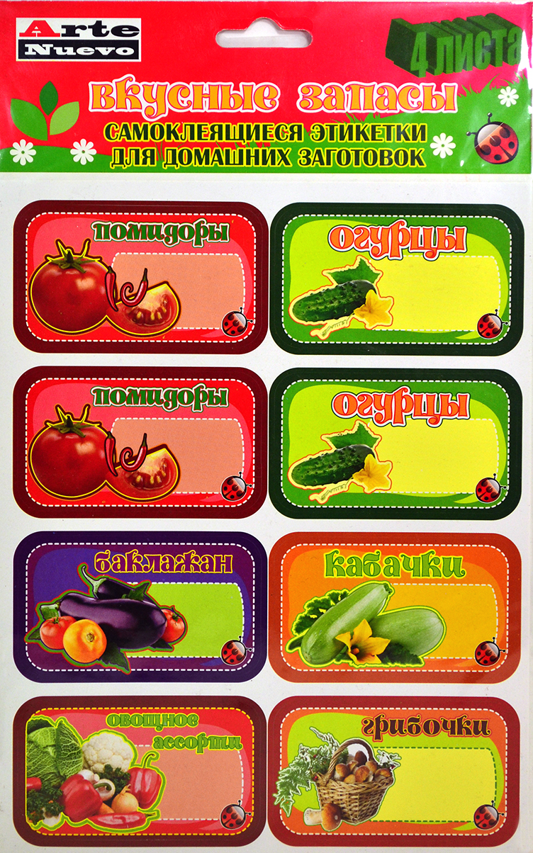 Самоклеящиеся наклейки для домашних заготовок *Овощи-грибы* 4 листа по 8 шт.