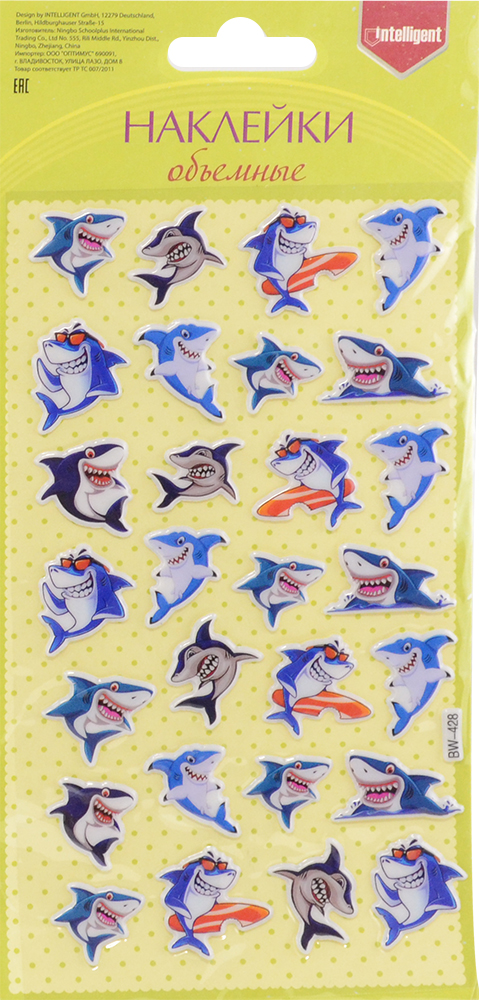 Наклейки объемные "Акулы" 10*21 см 310609