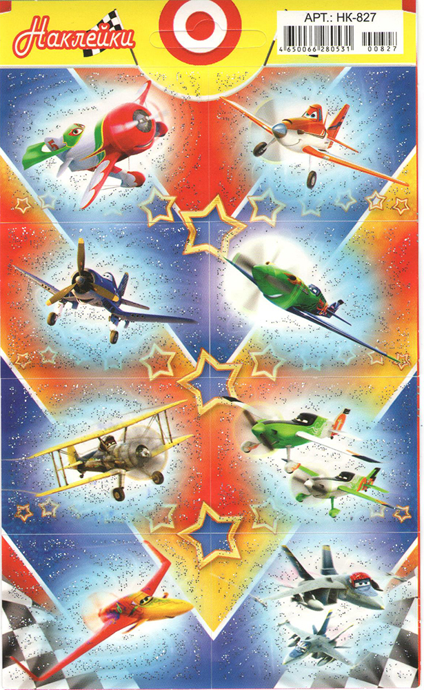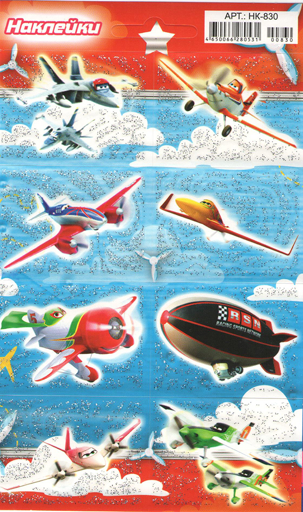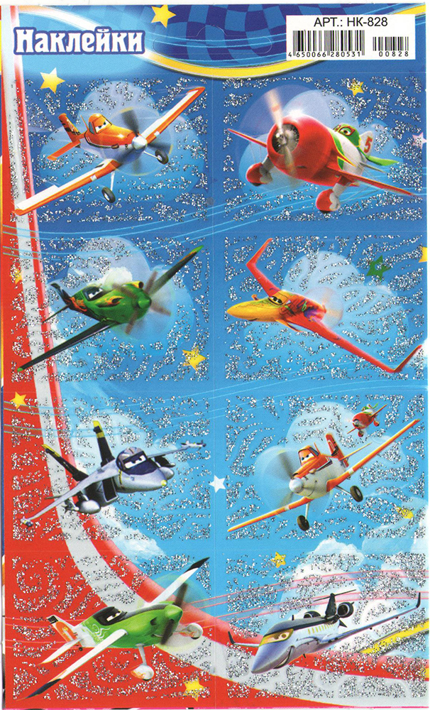 Наклейки предназначены для детского творчества и художественно-оформительских работ. Украшены яркими изображениями и блестками (глиттер).