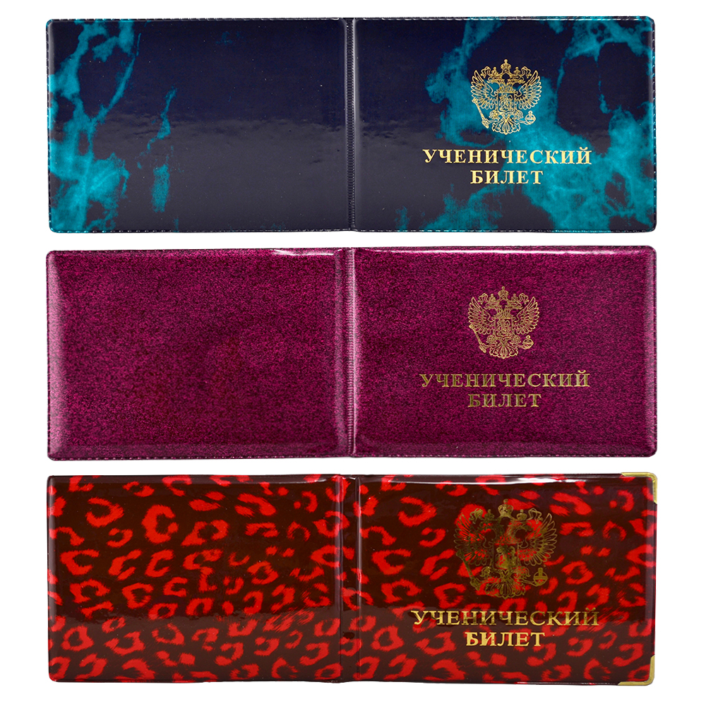 Обложка из ПВХ для ученического билета с золотым тиснением.