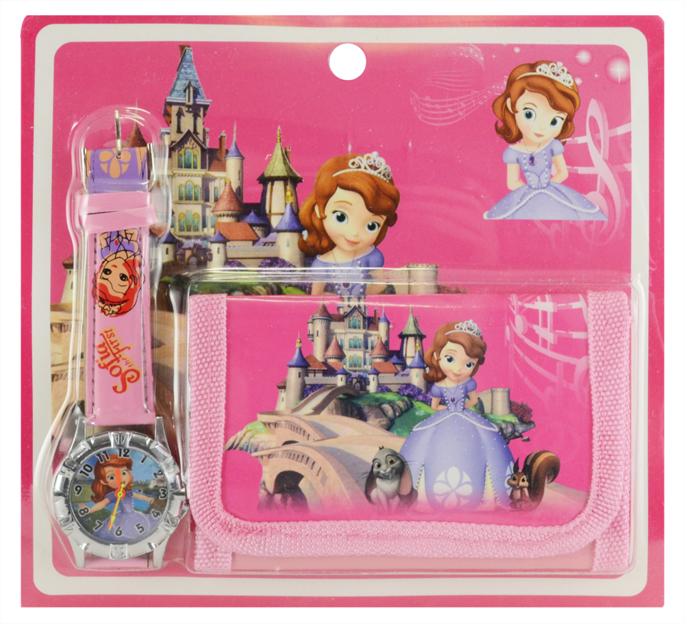 Яркий и красочный подарочный набор для девочек. Часы кварцевые (на батарейках) и кошелек с изображением любимых героев. Упаковка блистер, с яркой картинкой.