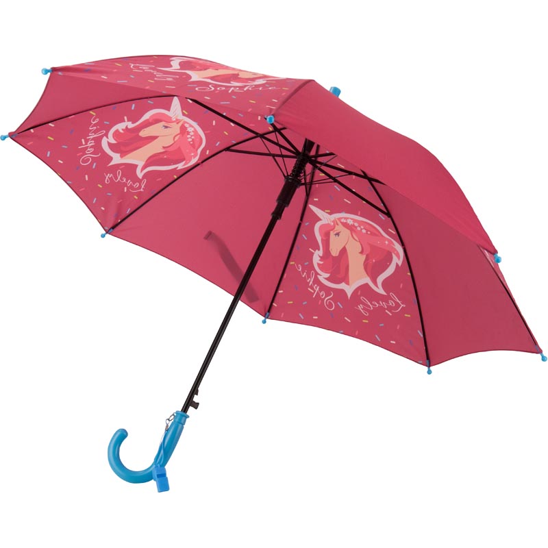 Яркий детский зонт с единорогом Kite Lovely Sophie K19-2001-2 защитит от непогоды и поднимет настроение в пасмурный день. Зонт-полуавтомат легко открывается и имеет изогнутую пластиковую ручку, которую удобно держать ребенку.