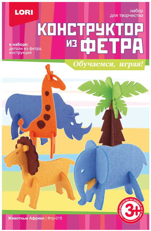 Малые конструкторы из фетра предназначены для детей старше 3 лет. Несложная техника сборки и небольшое количество деталей для конструирования одного предмета делают их очень привлекательными для детей.
