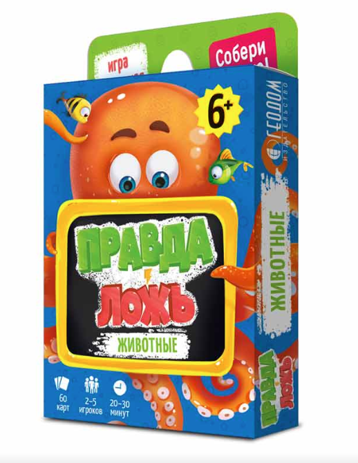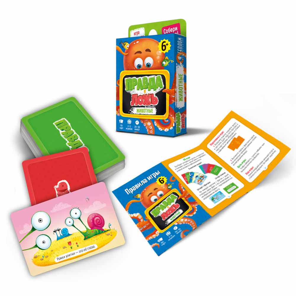 Эта карточная игра – находка для любознательных детей и их родителей! На карточках – 50 интересных фактов о животных и замечательные смешные иллюстрации. Сможете ли вы разобраться, где правда, а где ложь? Играйте – будет интересно!