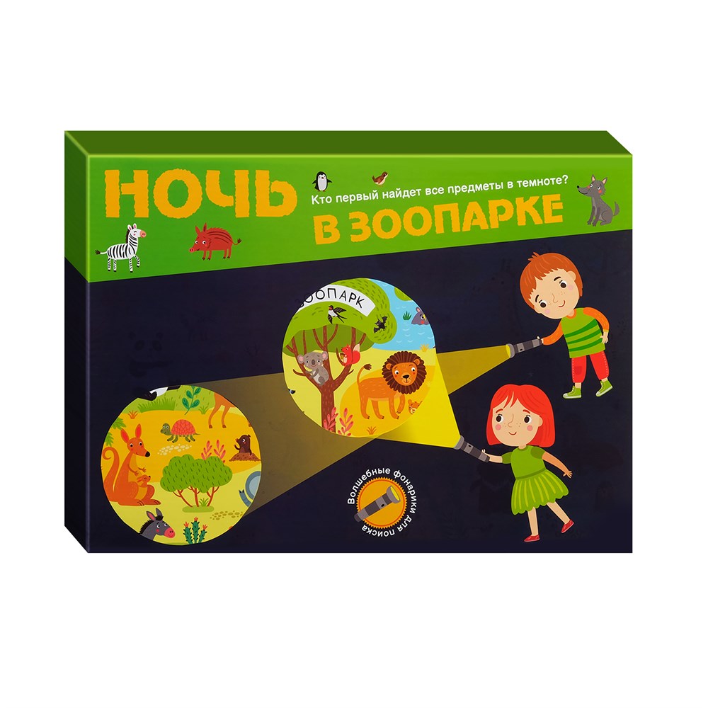 Ночь в зоопарке – увлекательная игра для детей и взрослых. Отправляйтесь в ночной зоопарк с настольной игрой из серии «Интересный мир»! В наборе вы найдете целых 100 карточек с предметами, специальное игровое поле и 2 фонарика. «Светите» фонариком в «темноту», опередите соперника и найдите всех животных в ночном зоопарке. Кто первым найдет льва? Кто проверит, спит ли белка? А кто сможет перечислить всех животных на букву «к»?