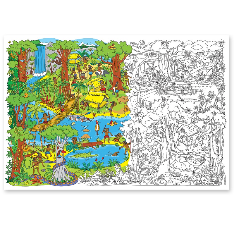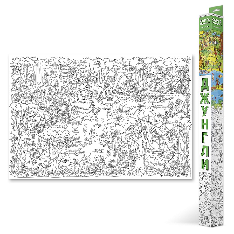 С новой настенной раскраской «Джунгли» у вашего ребёнка появится великолепная возможность не только исследовать тропический лес и познакомиться с его обитателями, но и пофантазировать, разукрасив в яркие цвета попугая Ара, опасного ягуара, медлительного ленивца и многих других!