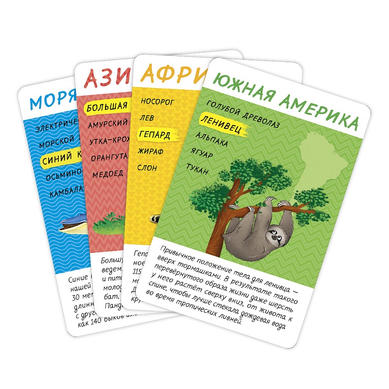 В этой коробке простая и увлекательная игра, которая учит мыслить логически и развивает память. В ходе игры содержимое карточек запоминается само собой. И теперь вы уже не перепутаете, что белый медведь живёт в Арктике, а пингвин — в Антарктиде!