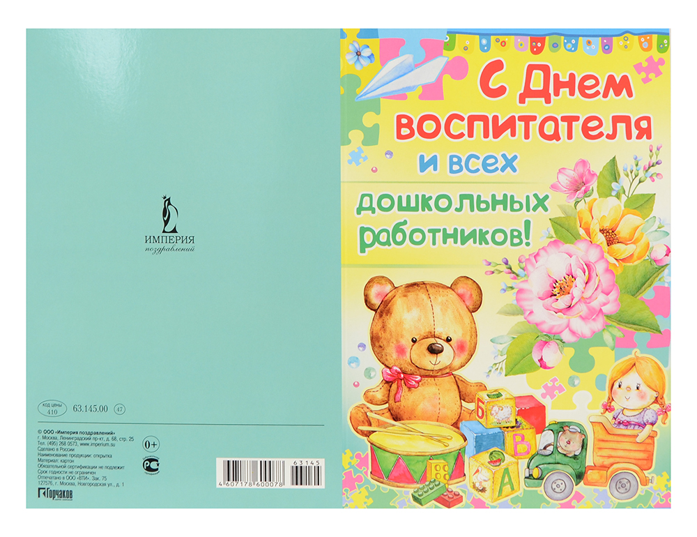 Открытка А5 "С днём воспитателя и всех дошкольных работников!" 63.145.00