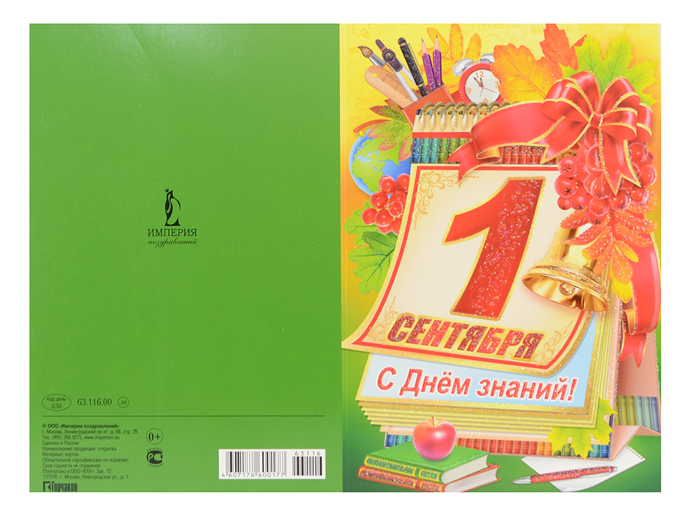 Открытка А5 "1 сентября с днём знаний!" 63.116.00