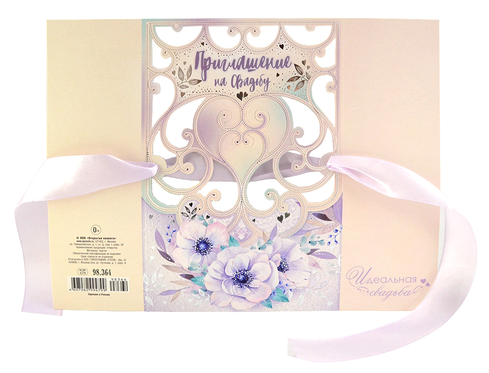 Приглашение "Идеальная свадьба", 10 штук, складное, 2 створки, на лентах 98.364