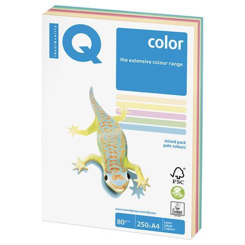 Бумага IQ color А4, 80 г/м2, 250 листов (5 цветов x 50 листов), цветная пастель 110692