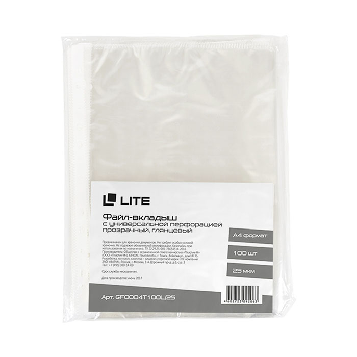 Файлы А4 100 штук 25 мкм Lite вертикальные гладкие GF0004T100L/25