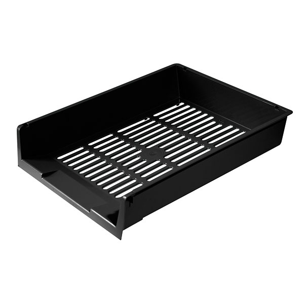 Лотки изготовлены из прочного пластика черного, серого и прозрачного дымчатого цвета. Лотки легко устанавливаются друг на друга. Для облегчения конструкции у лотков предусмотрено сетчатое дно. Компактно размещаются на столе. Вертикальный принцип сборки. Цвета: прозрачный, черный, серый. Габариты: 340x270x70 мм.