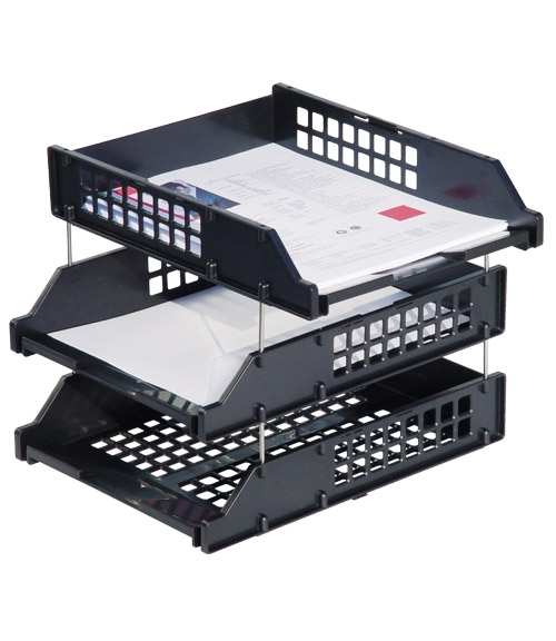 Лоток для бумаг *Strong* горизонтальный, 3 отделения, черный.
