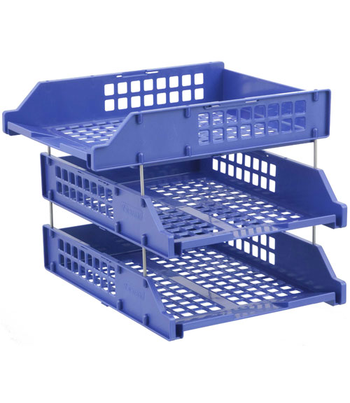 Лоток для бумаг *Strong* горизонтальный, 3 отделения, синий.