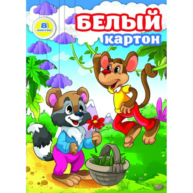 Картон белый односторонний мелованный. Количество листов — 8, количество цветов — 1. Предназначен для рисования, аппликаций и других видов творчества. Формат картона А4.