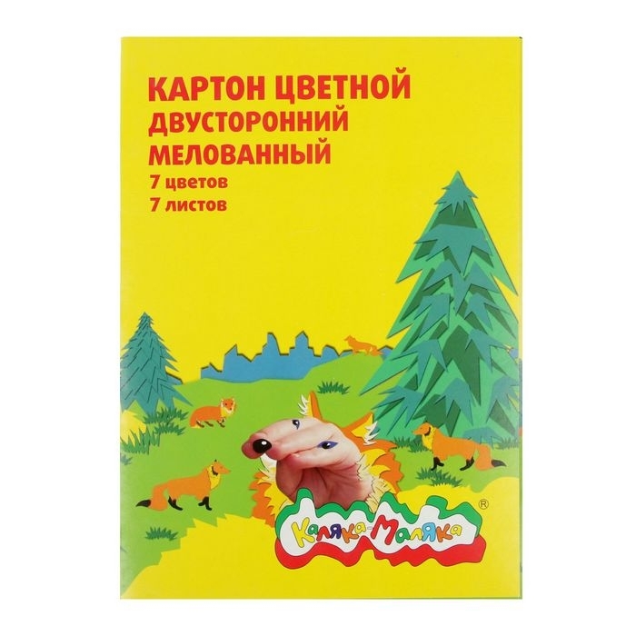 Картон цветной А4 7 листов 7 цветов двухсторонний мелованный "Каляка-маляка"