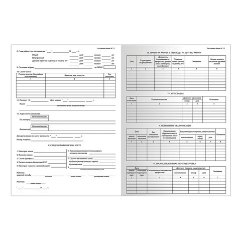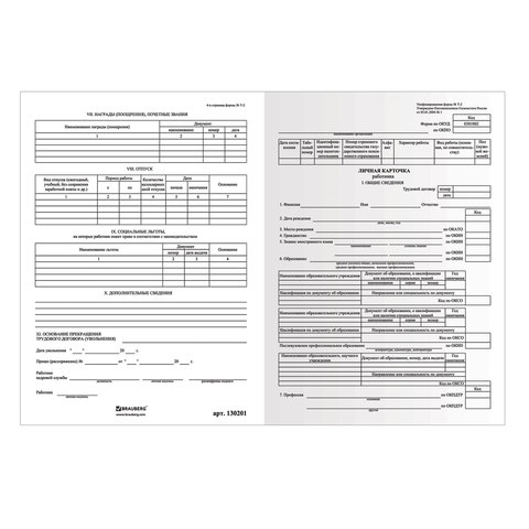 Бланк А4 "Личная карточка работника" 50 штук Т-2 120 г/м2 Brauberg