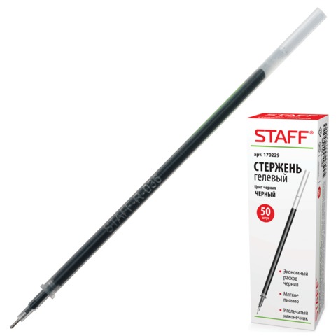Стержень с гелевыми чернилами обеспечивает ровное, комфортное письмо. Подходит ко всем типам неавтоматических гелевых ручек. Эконом-вариант для повседневного использования.