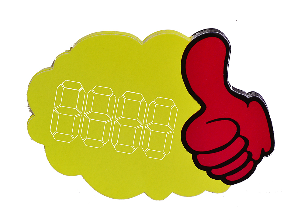 Яркий привлекающий внимание акционный ценник. На ценнике есть трафарет для цифр.