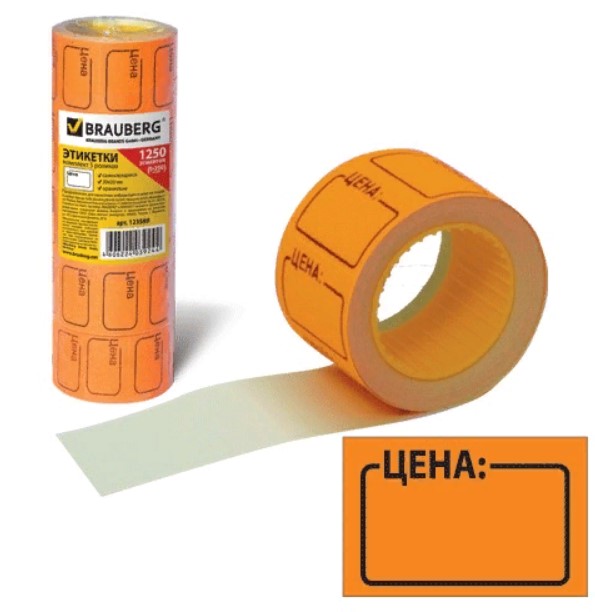 Этикет-лента "Цена" 30*20 мм, 5 рулонов по 250 штук, оранжевый Brauberg