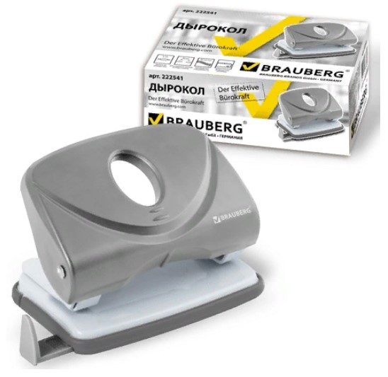 Дырокол на 20 листов, серый BRAUBERG "Einkommen", средний