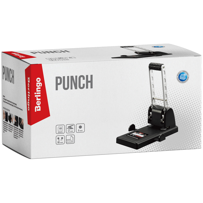 Дырокол мощный Berlingo "Heavy Duty" 100 листов, черный, с линейкой