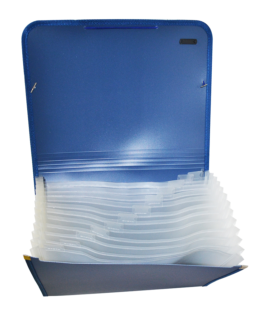 Портфель формата А4 из плотного непрозрачного рельефного пластика для хранения файлов и документов. В портфеле 13 полупрозрачных карманов с "язачками" для маркировки, в комплект входят наклейи с английским алфавитом. Портфель плотно закрывается на 2 резинки по углам. Удобен для переноски документов, предотвращает их смятие и загрязнение.