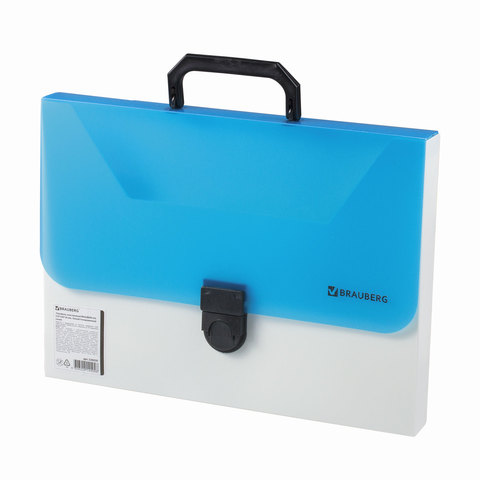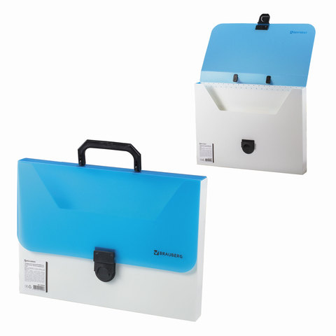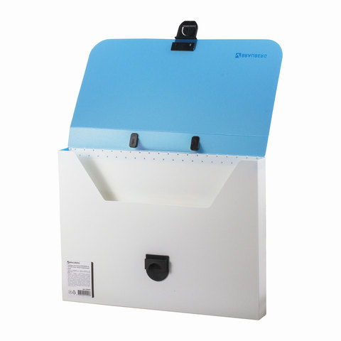 Портфель пластиковый BRAUBERG "Гранд А4", без отделений, белый/тонированный синий