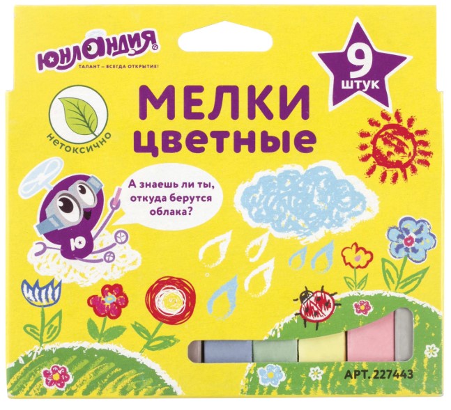 Мел цветной, набор 9 штук, квадратный Юнландия "Юнландик и окружающий мир"