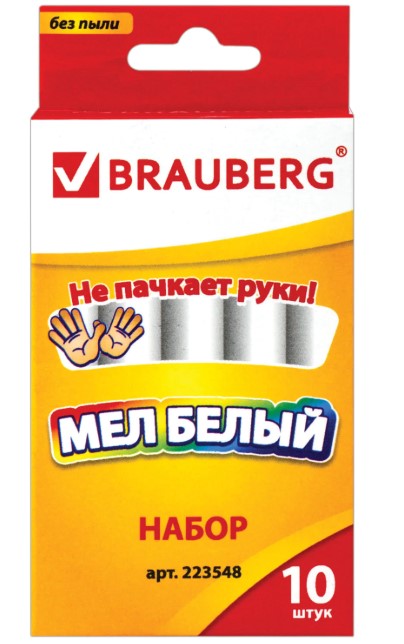 Мел белый школьный Brauberg с формулой без пыли, предназначен для письма и рисования на любой пригодной поверхности.