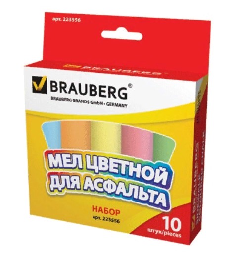 Мел цветной для асфальта набор 10 штук круглый Brauberg