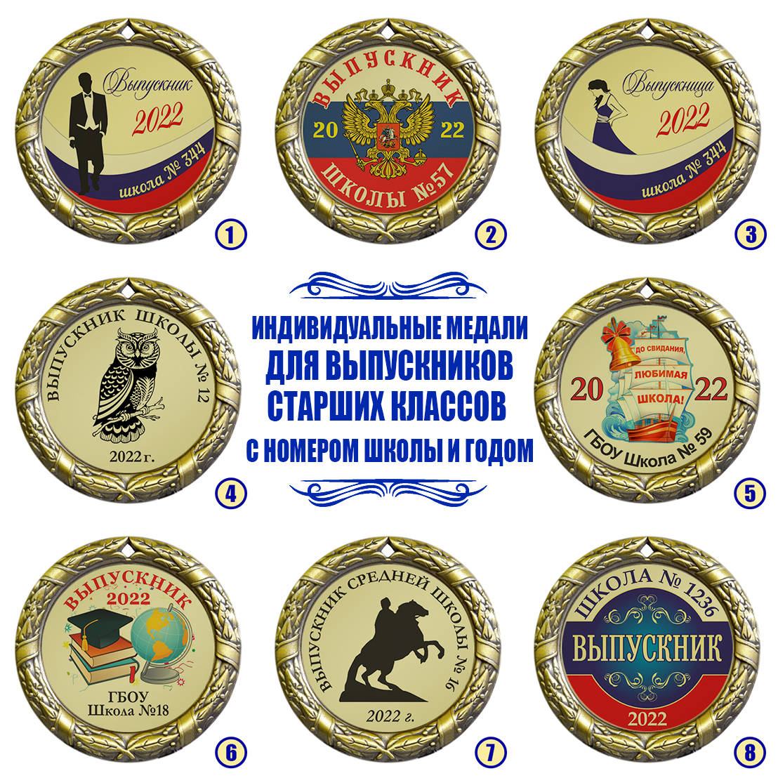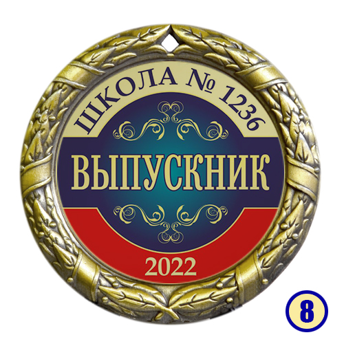 Индивидуальная медаль "Выпускник средней школы" с номером учебного заведения