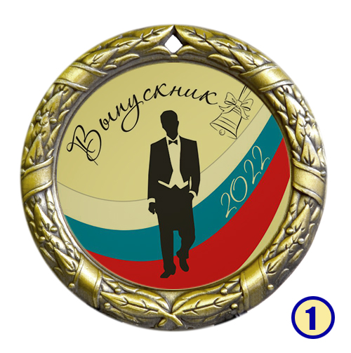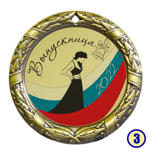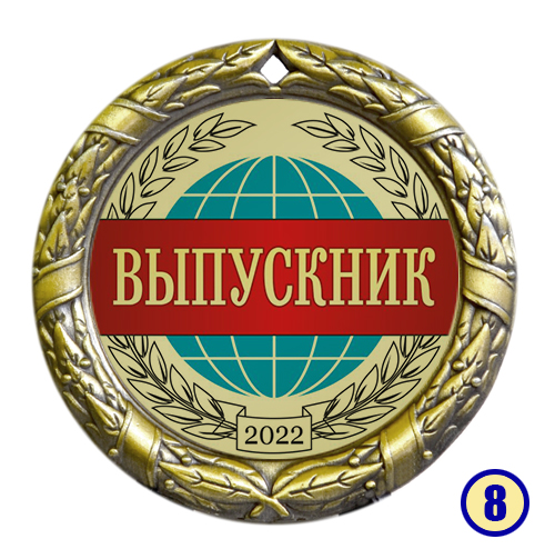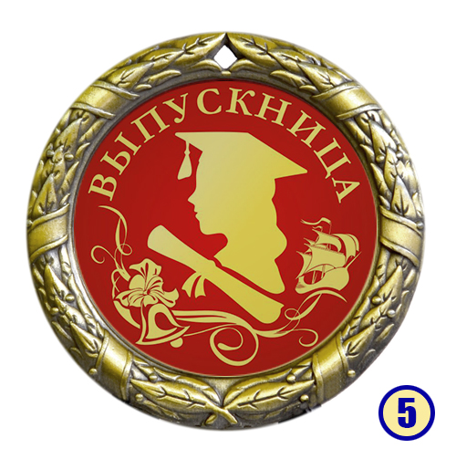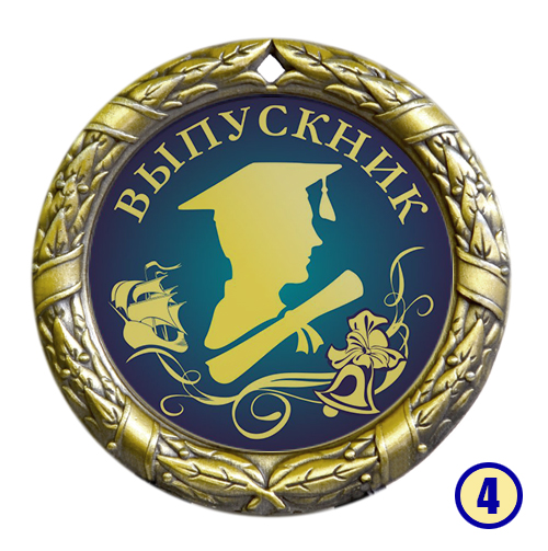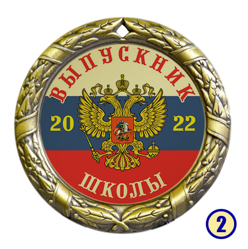 Медаль "Выпускникам средней школы" изготовлена из металла с золотым напылением, в центре - цветная гравировка на выбор.