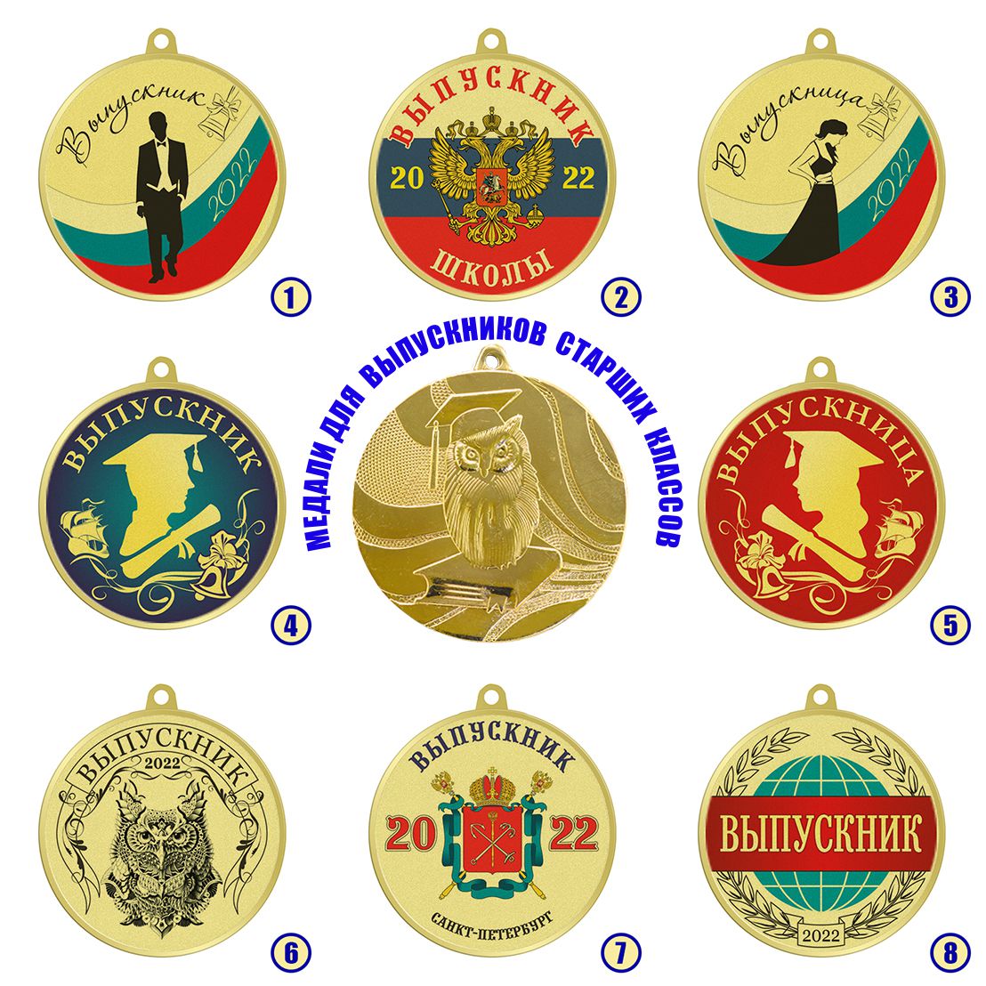 Медаль "Выпускникам средней школы" изготовлена из металла с золотым напылением, с объемной гравировкой на лицевой и на обратной стороне - цветная гравировка на выбор.