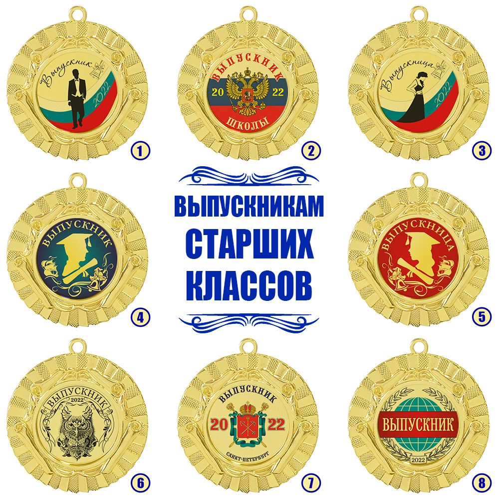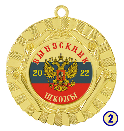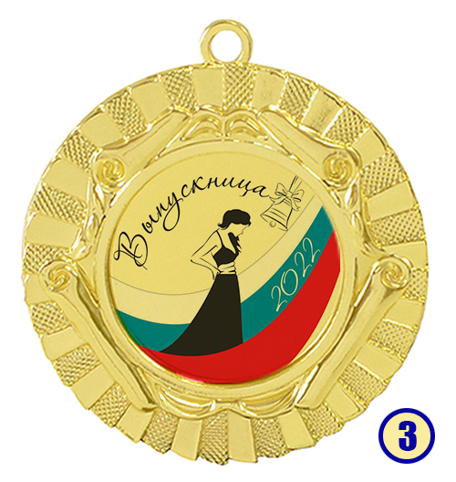 Медаль "Выпускник средней школы" изготовлена из металла с золотым напылением, с объемной гравировкой на лицевой и на обратной стороне - цветная гравировка на выбор.