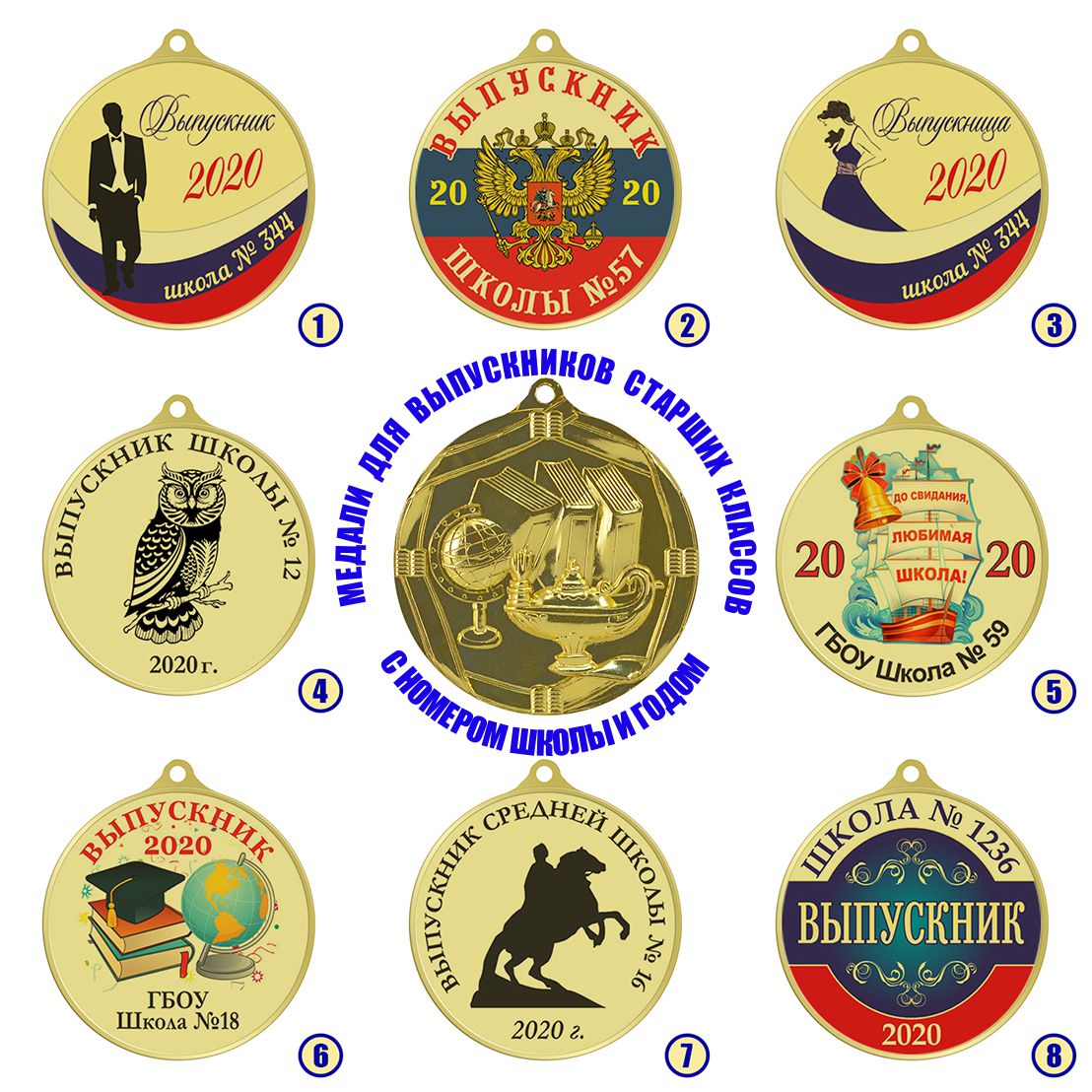 Индивидуальная медаль "Выпускник средней школы" с номером учебного заведения