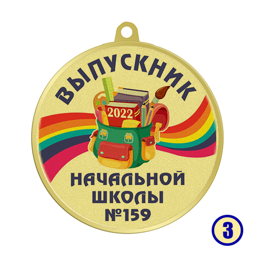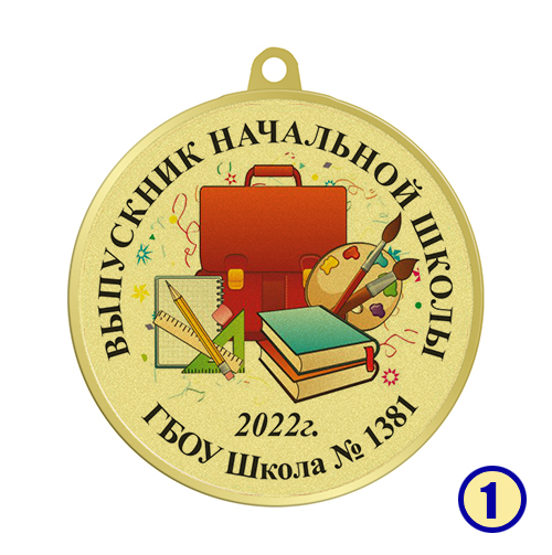 Индивидуальная медаль "Выпускник начальной школы" с номером учебного заведения
