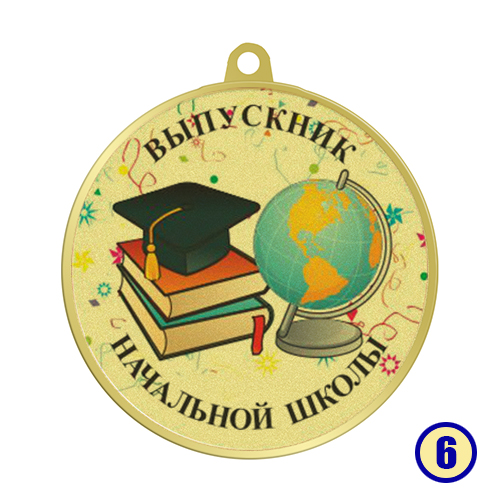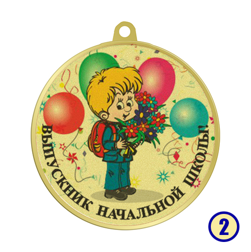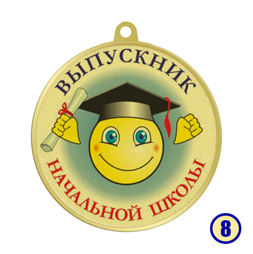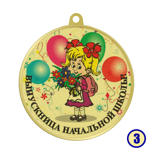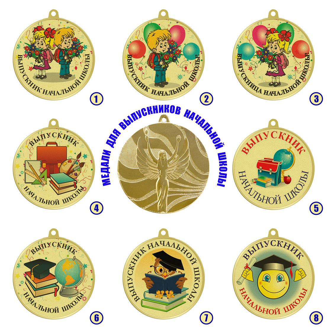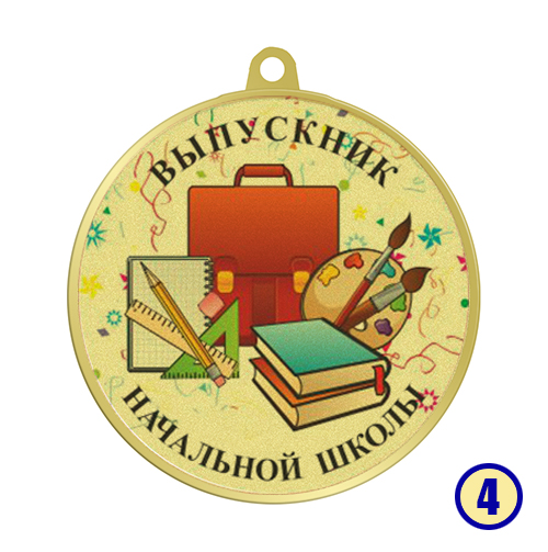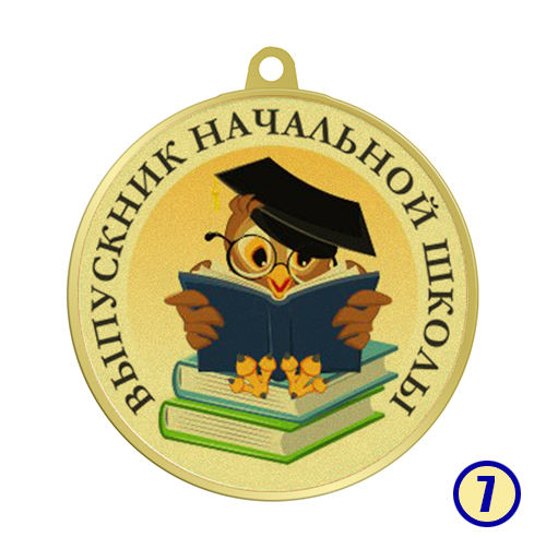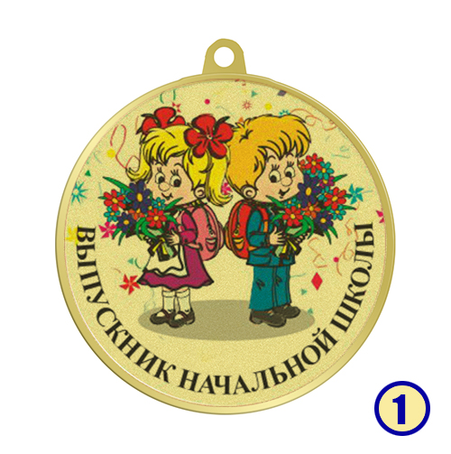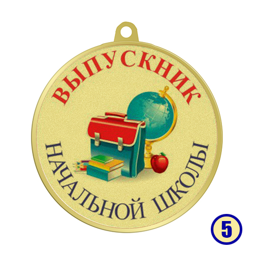 Медаль "Выпускник начальной школы" изготовлена из металла с золотым напылением, с объемной гравировкой на лицевой и на обратной стороне - цветная гравировка на выбор.