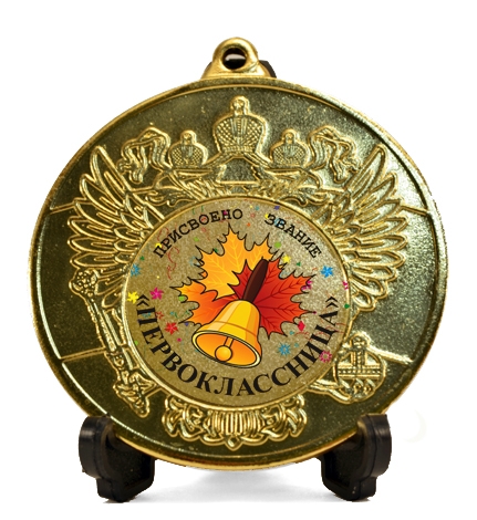 Медаль * Присвоено звание - ПЕРВОКЛАССНИЦА * Колокольчик.