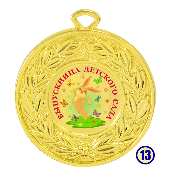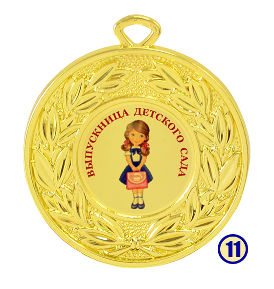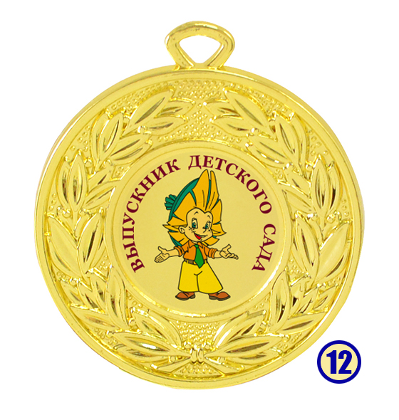 Медаль "Выпускник детского сада" изготовлена из металла с золотым напылением, в центре - цветная гравировка на выбор.