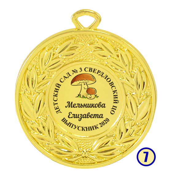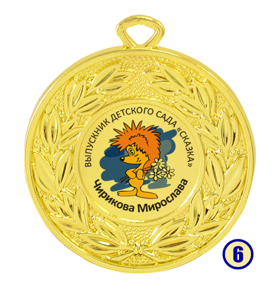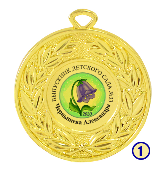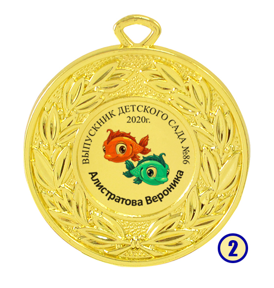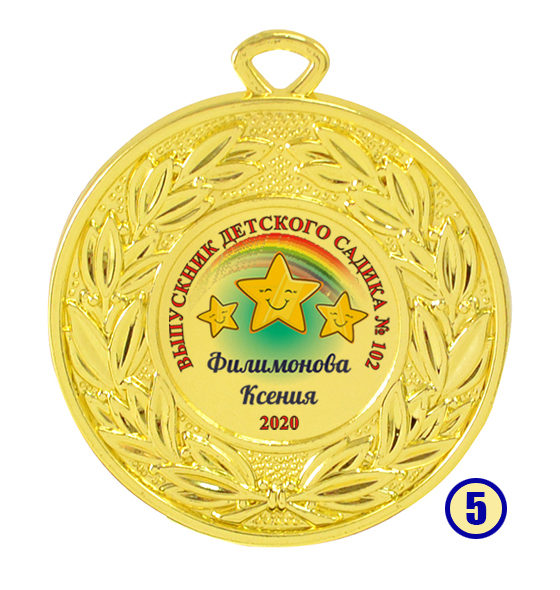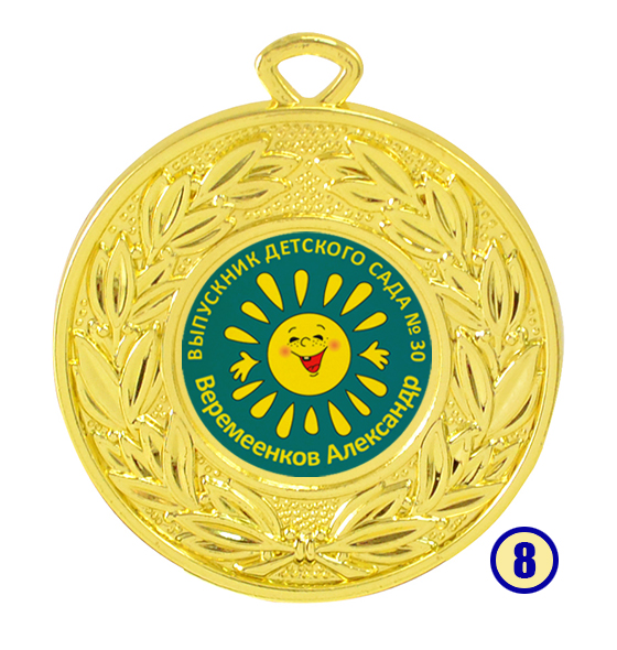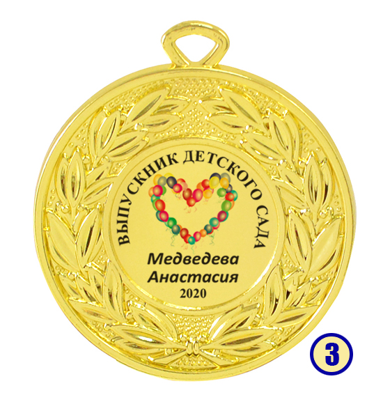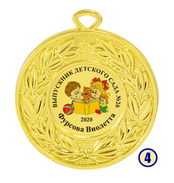 Именная медаль "Выпускник детского сада" изготовлена из металла с золотым напылением, в центре - цветная гравировка на выбор.
