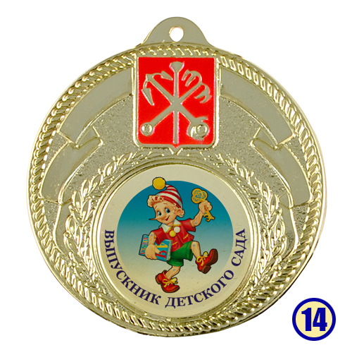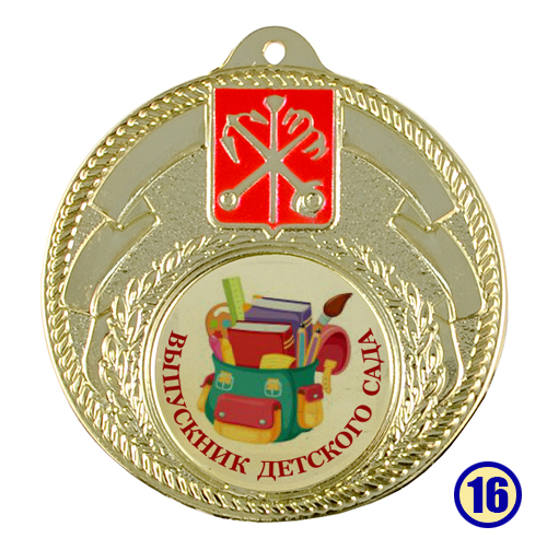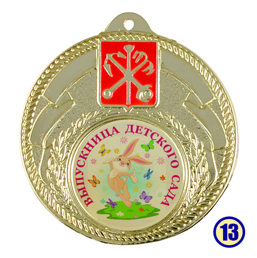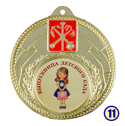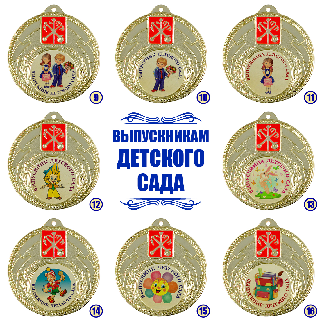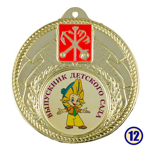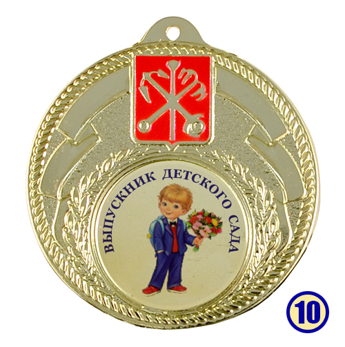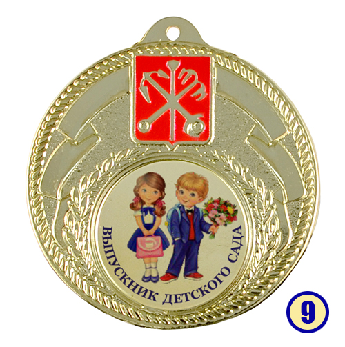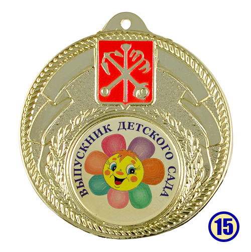 Медаль "Выпускник детского сада" изготовлена из металла с золотым напылением, в центре - цветная гравировка на выбор.