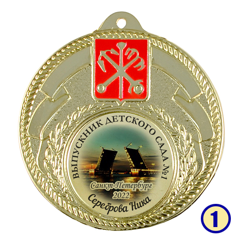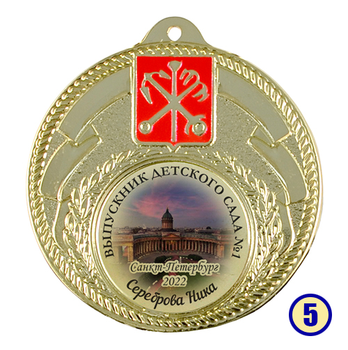 Именная медаль "Выпускник детского сада" изготовлена из металла с золотым напылением, в центре - цветная гравировка на выбор.