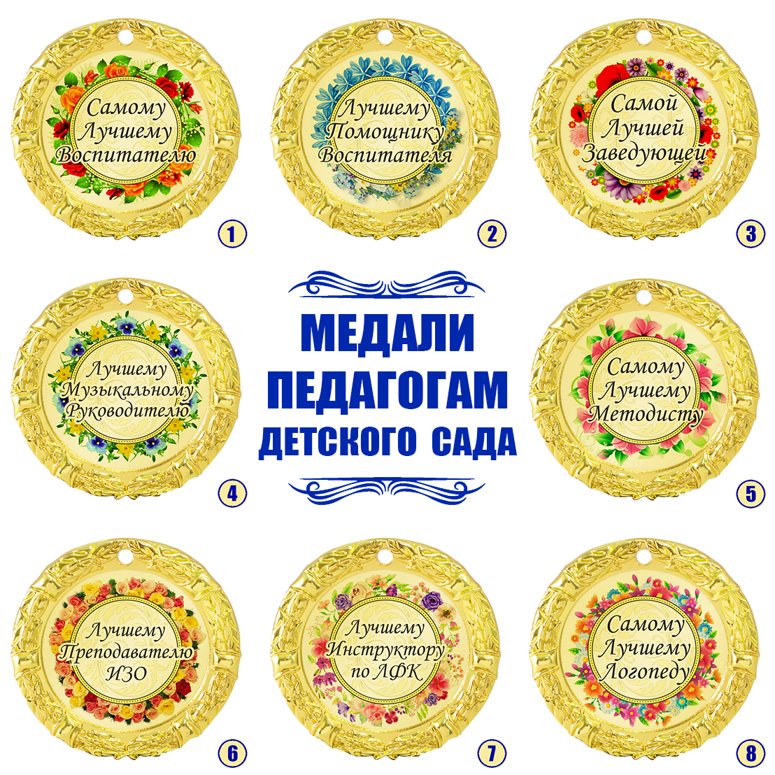 Медаль "Педагога детского сада" изготовлена из металла с золотым напылением, с гравировкой на лицевой - цветная гравировка на выбор.