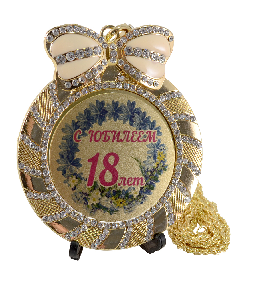 Медаль "С юбилеем" станет отличным памятным подарком близкому человеку! Медаль украшена многочисленными стразами. В комплекте с медалью идет цепочка и красивый футляр с экспозитором.