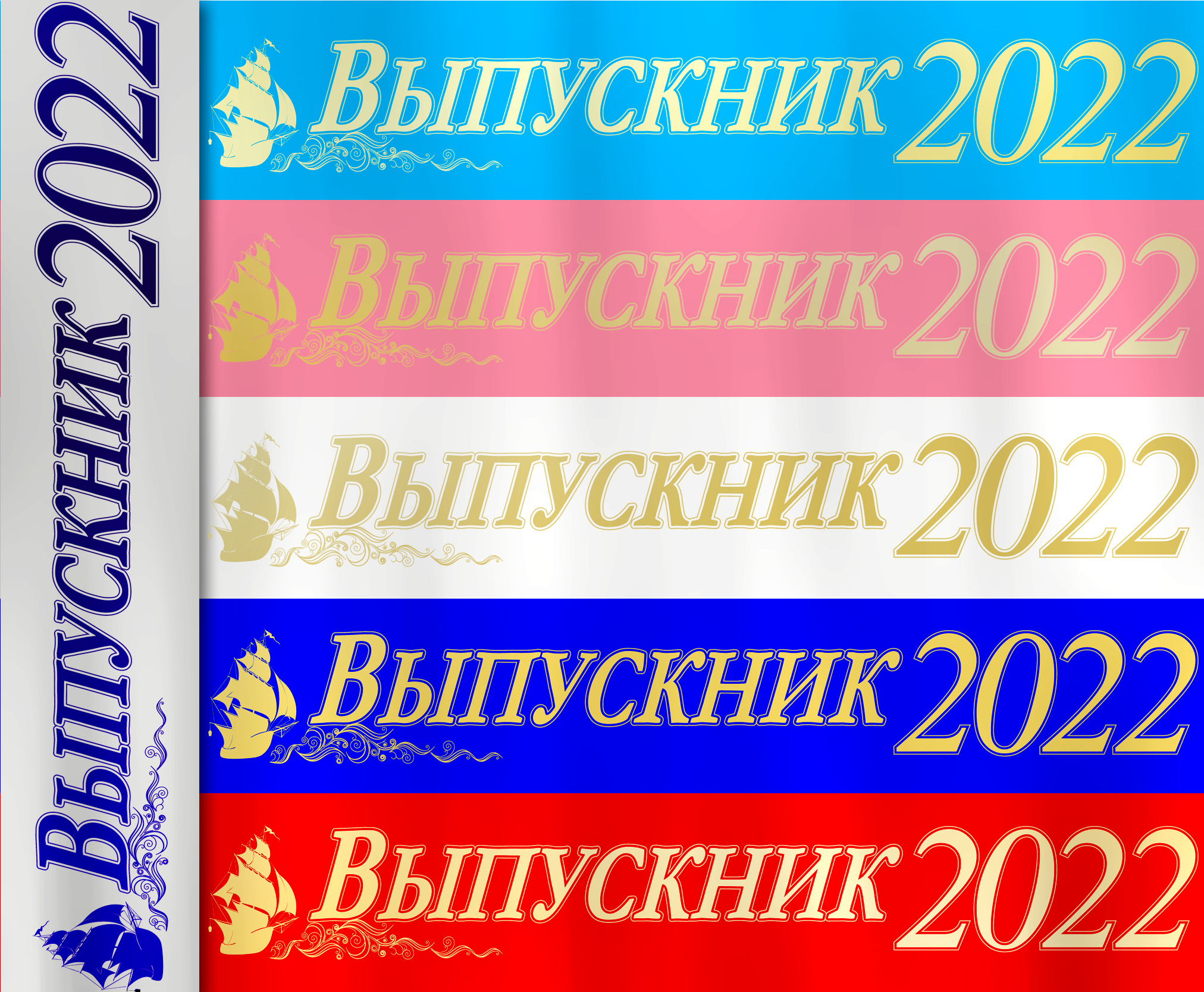 Атласная лента "Выпускник 2022" корабль в ассортименте