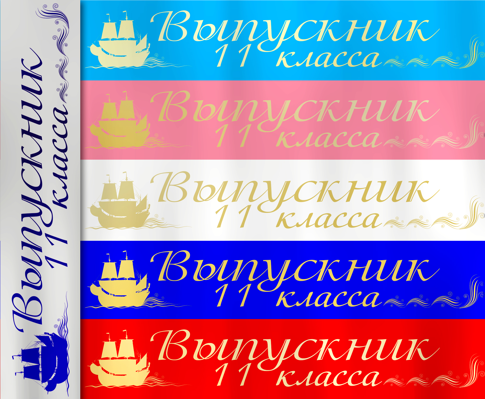 Атласная лента "Выпускник 11-го класса" Корабль в ассортименте